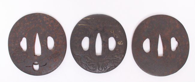 Three(3) 19th Century, Japanese Samurai Tsuba sword gua