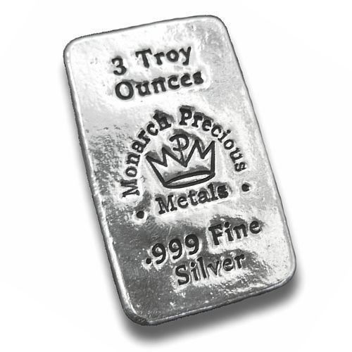 Three (3) Ounce Monarch Hand Poured .999 Fine Silver Bar, 3 oz. Fine Silver