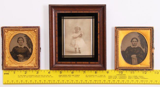 Three(3) antique framed tin types. SIZE: see attached ruler photo. Photos are part of the description representing the condition report and can be used for authentication prior to the sale date. Pangaea Auctions urges Bidder's to view all attached photos in detail.