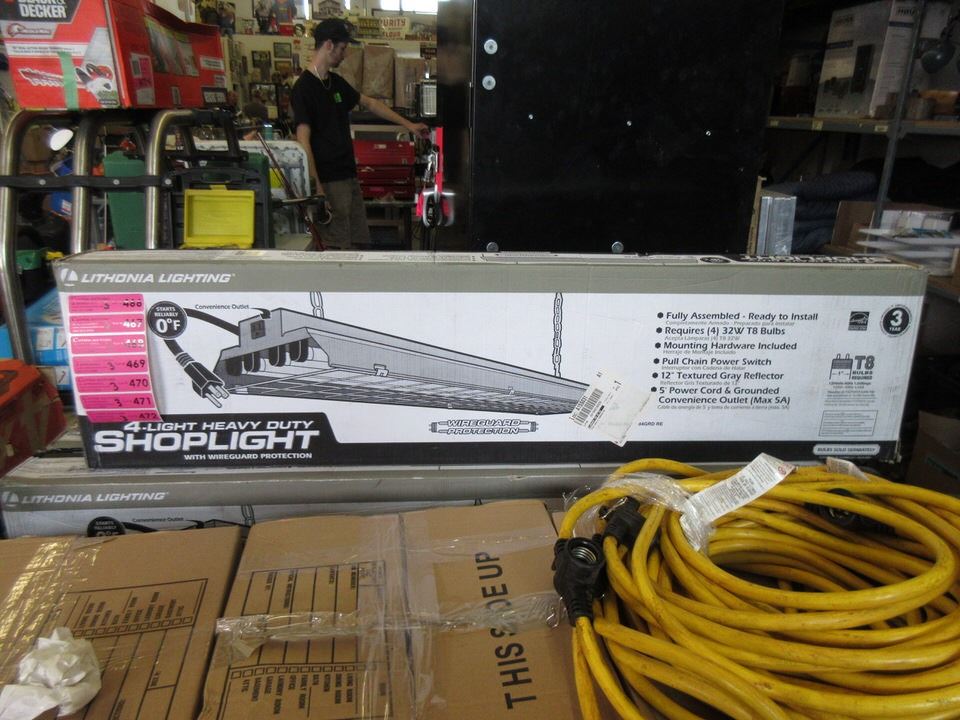 Three 4 Light Heavy Duty Shop Lights in Boxes