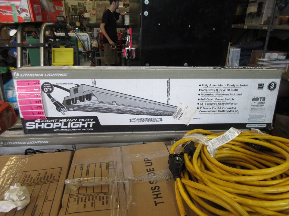 Three 4 Light Heavy Duty Shop Lights in Boxes