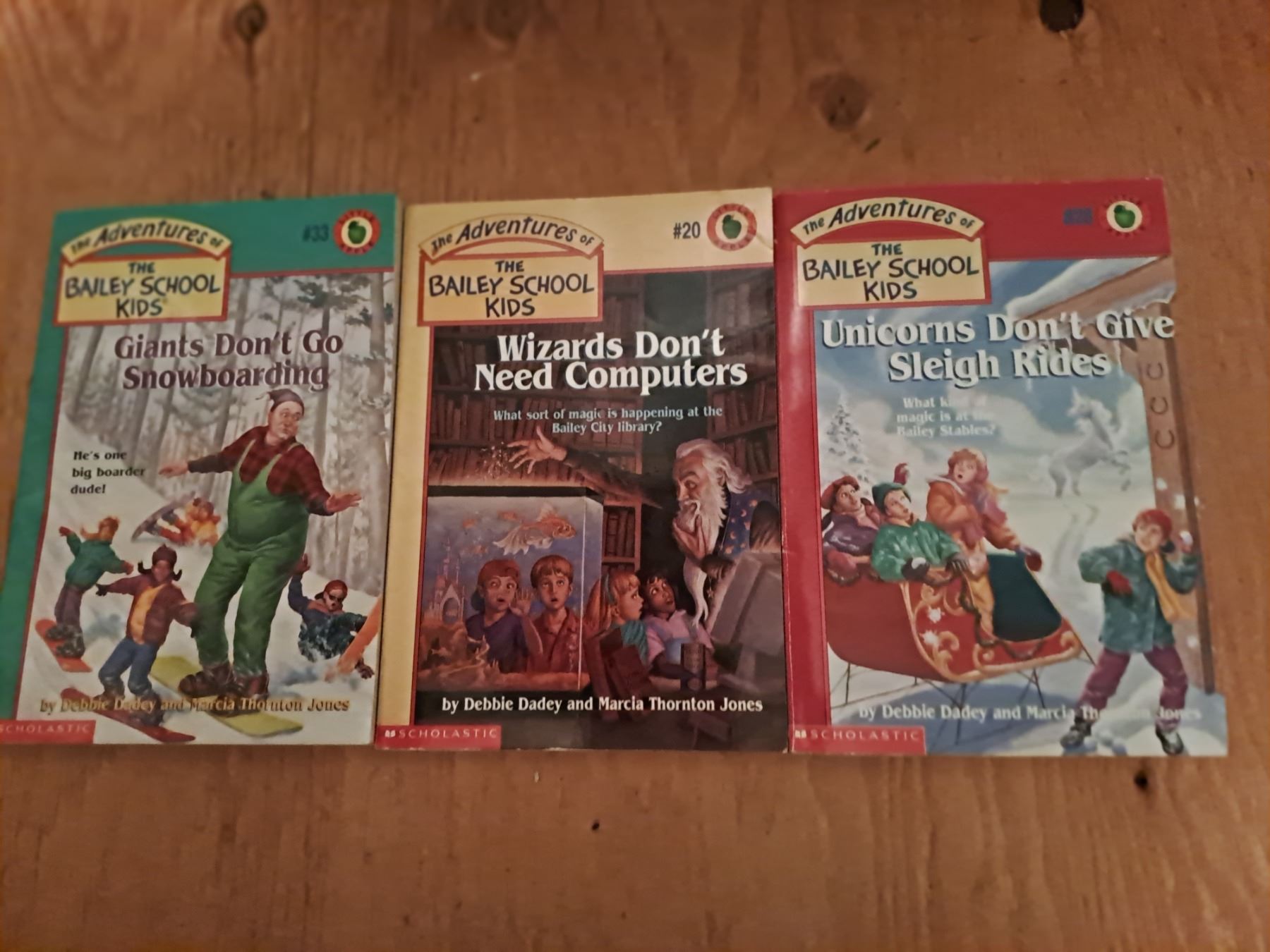 Three Adventures of the Bailey School Kids books, Giants Don’t Go Snowboarding, 1998, Wizards Don’t Need Computers, 1996, and Unicorns Don’t Give Sleigh Rides, 1997
