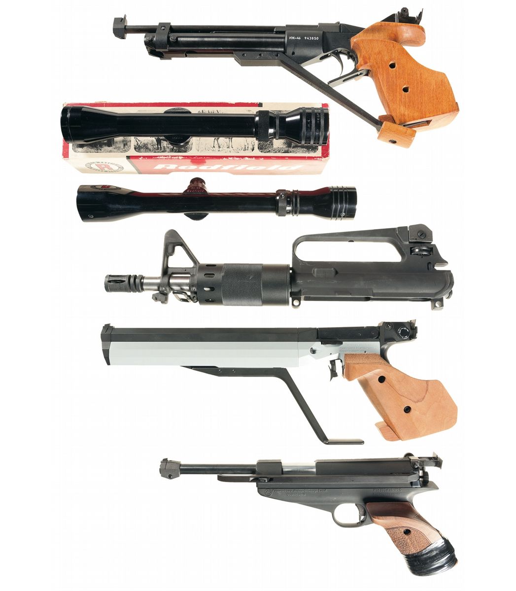 With case, AR-15 pistol upper receiver with barrel, Redfield 3-9x scope and Redfield 2-7x scope.