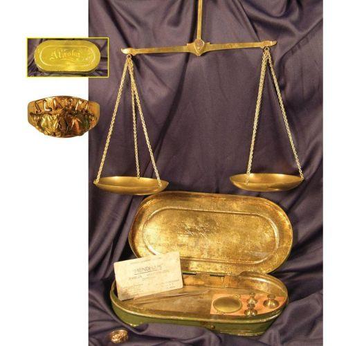 Alaskan Gold Scales, container measures 8 1/2 X 4 inches, Aluminum Calling Card for Mendham Jeweler, Fairbanks, Alaska and Alaskan Gold ring.