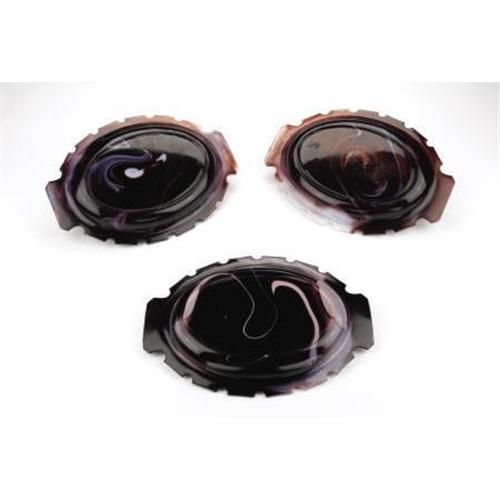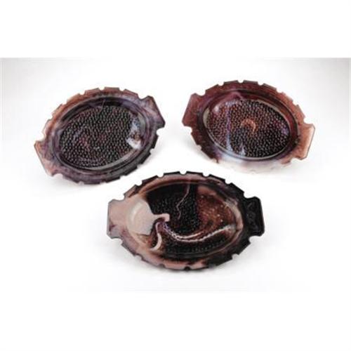 <B>Three American Slag Glass Serving Plates<BR></B></I>Unknown maker<BR>Circa 1900<BR>In purple and white marbling with floral pattern to the handles<BR>Unmarked<BR>13 inches long x 9.2 inches wide<BR><BR><b>Shipping:</b> Requires 3rd Party Shipping (<a target="_blank" href="http://www.heritageauctions.com/common/shipping.php">view shipping information</a>)