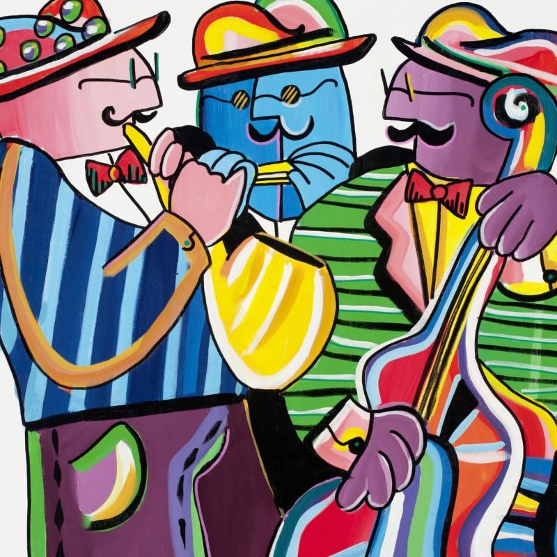 "Three Amigos " is an original acrylic painting on canvas by Rina Maimon, hand signed by the artist and includes a certificate of authenticity. Measures approximately 35" x 35"