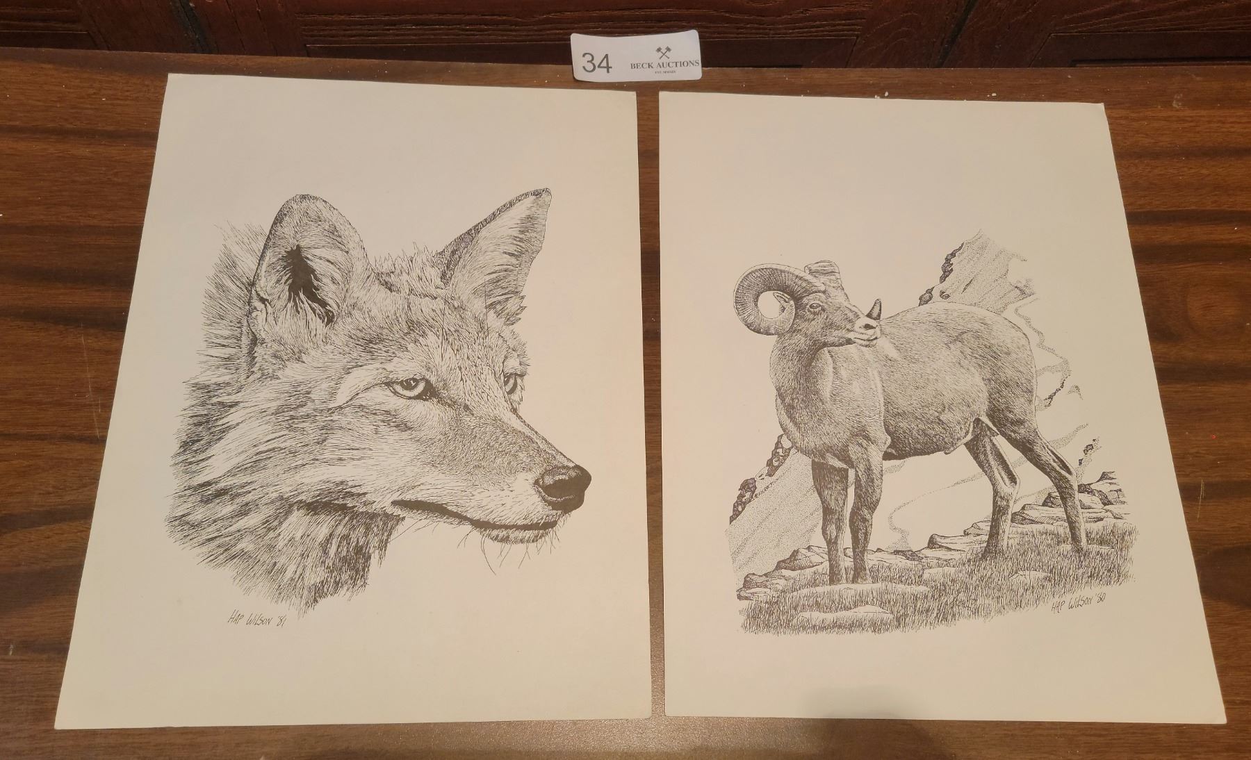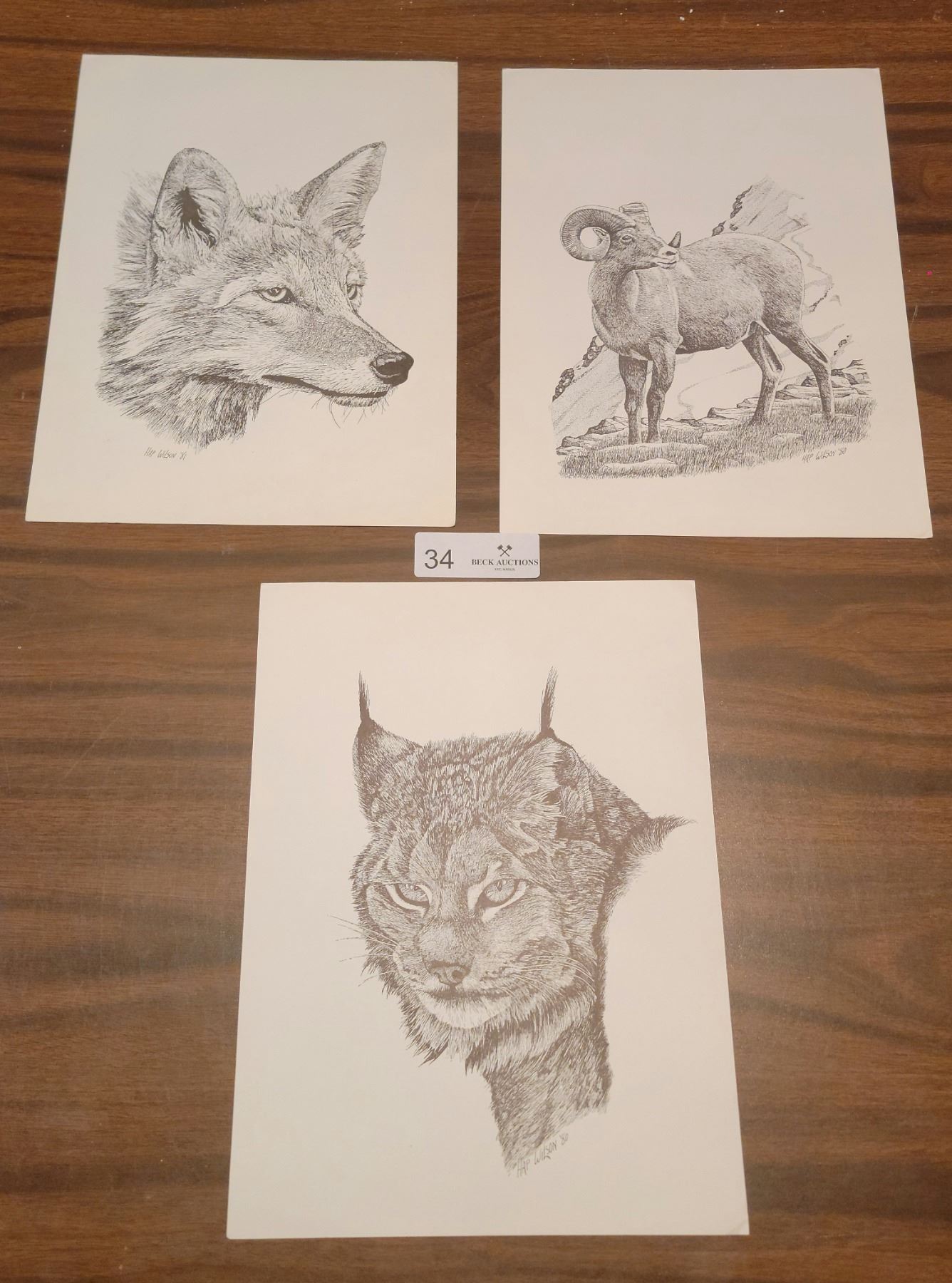 Three Animal Drawing Prints By HAP Wilson