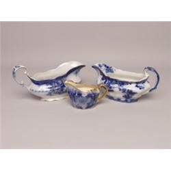 Three Antique Flo-Blue Items Two Sauces and a Creamer Tiny Chip to Creamer One Chip to Sauce Repainted