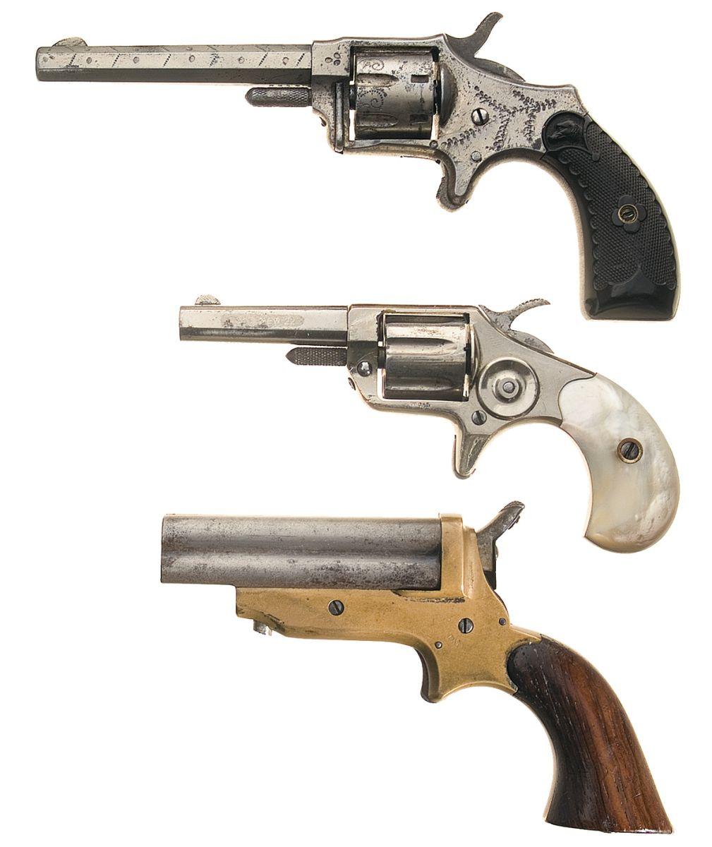 A) "CZAR" marked top strap, patent dates on top barrel flat, light floral type and punch dot engraving on barrel, cylinder and frame sides, metal cleaned.