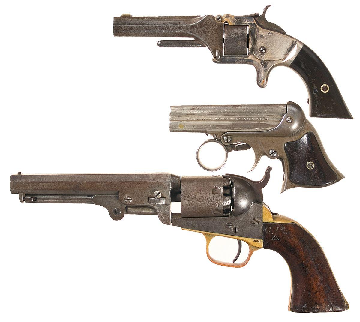 C) Produced in 1864, standard markings and features with matching visible numbers. Repaired grip with "C.M. / triangle" carved on left side and a couple chips and slivers absent.