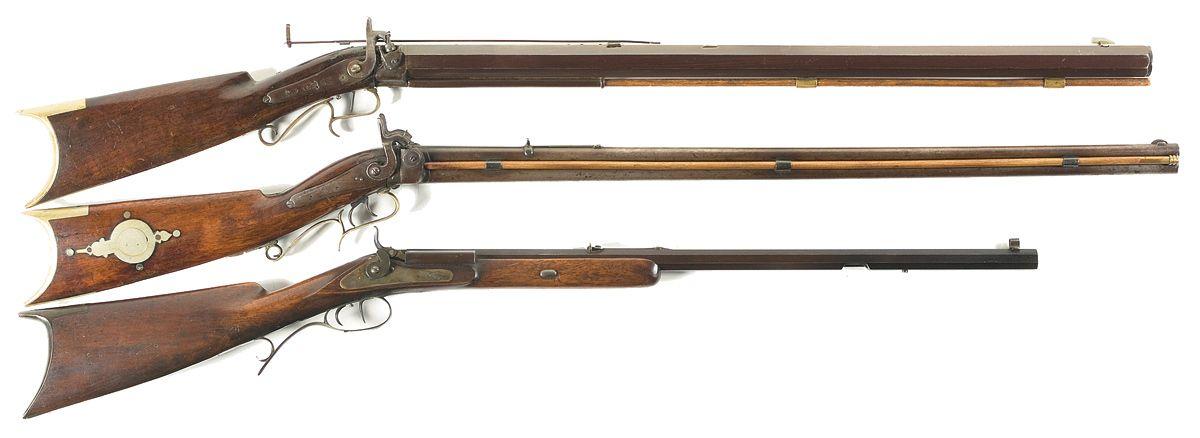 A) Lock marked "R.B." tang and heavy barrel drilled for sight mounts, blade front and long rear peep sights, elevator absent, hammer does not hold at full cock position.