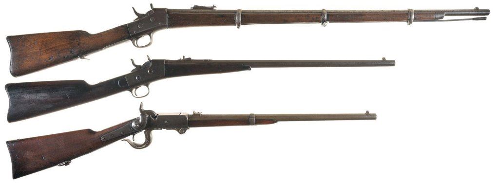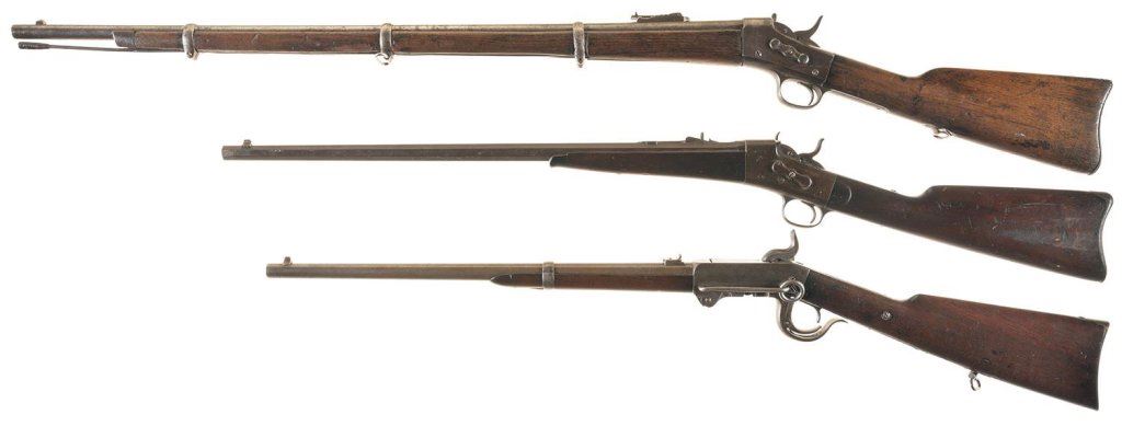 Three Antique Single Shot Long Guns -A) Remington No. 1 Rolling Block Rifle