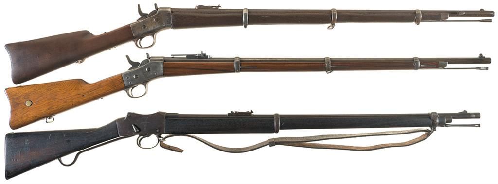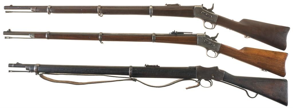 Three Antique Single Shot Rifles -A) Remington Rolling Block Military Rifle