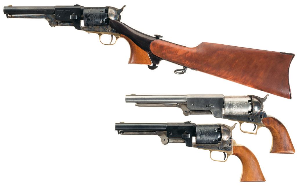 Three Armi San Marco Percussion Revolvers -A) ASM Colt Third Model Dragoon Revolver with Shoulder Stock