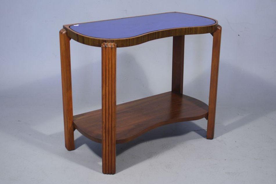 Three Art Deco Side Tables with Mirrored Blue Tops.