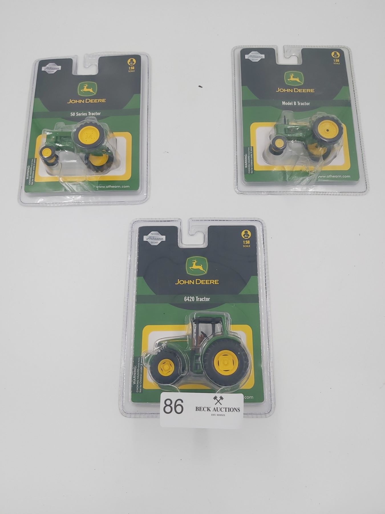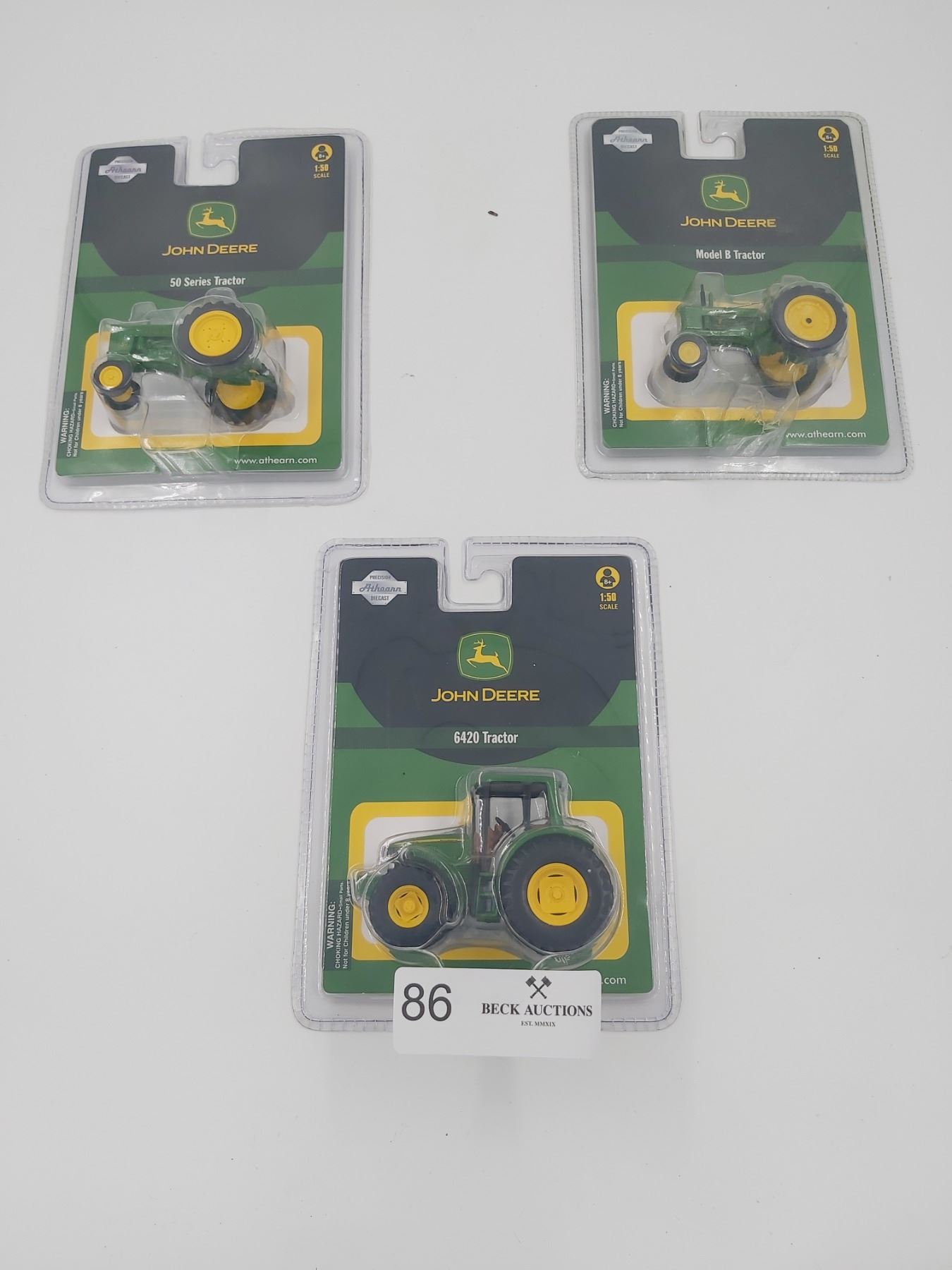 Three Athean John Deere 1:50 Scale Diecast