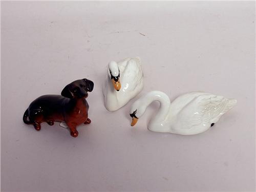 A Pair of Swans and a Dachshund.