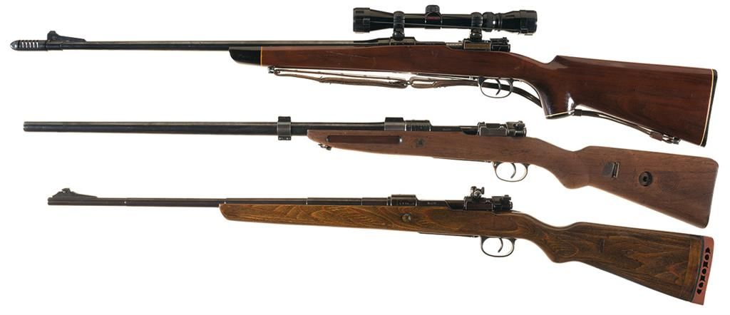 Three Bolt Action Rifles -A) Johnson Automatic Custom Mauser 98k Rifle with Scope