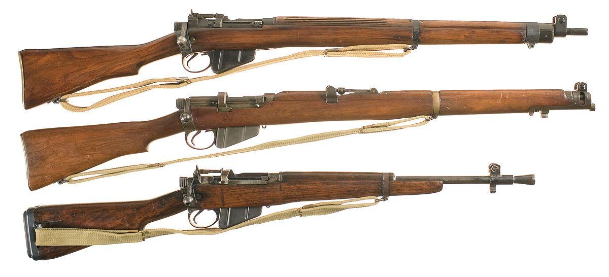 C) Receiver dated "7/45" with Fazakerley Arsenal marking ("ROF (F)"), revarnished stock with repair in grip area, canvas sling.