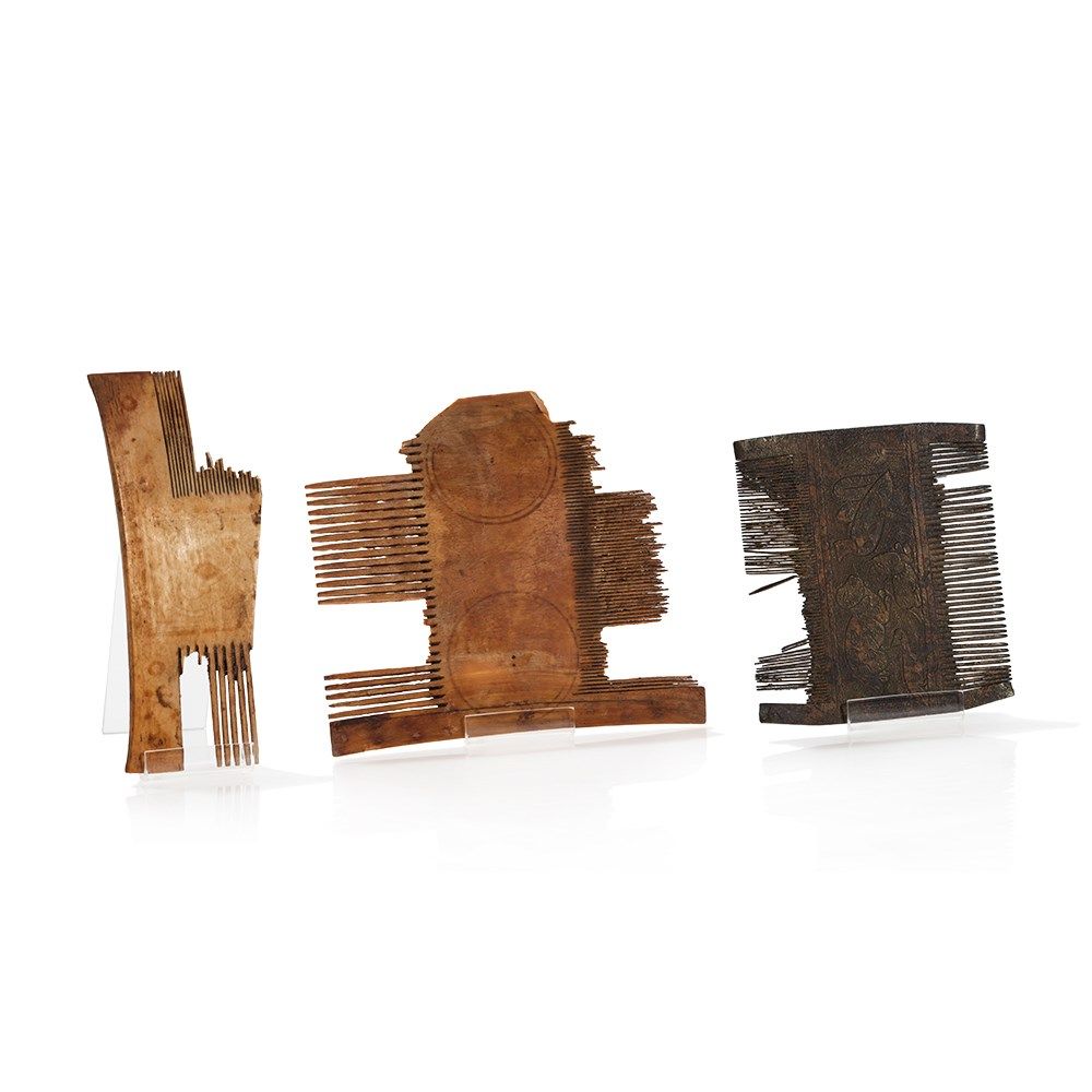 Dimensions ivory combs: 10.5 x 9.5 cm; 11 x 4 cm