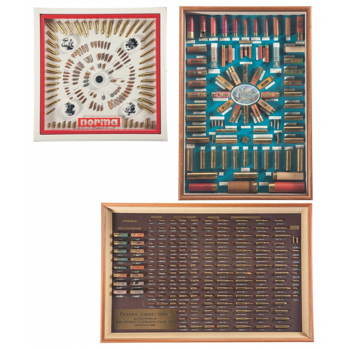 Norma bullet board, 21 1/2"x21 1/2"; custom bullet board, 17 1/2"x25 1/2"; Peters bullet board (professionally custom built), 41"x27". All are excellent.