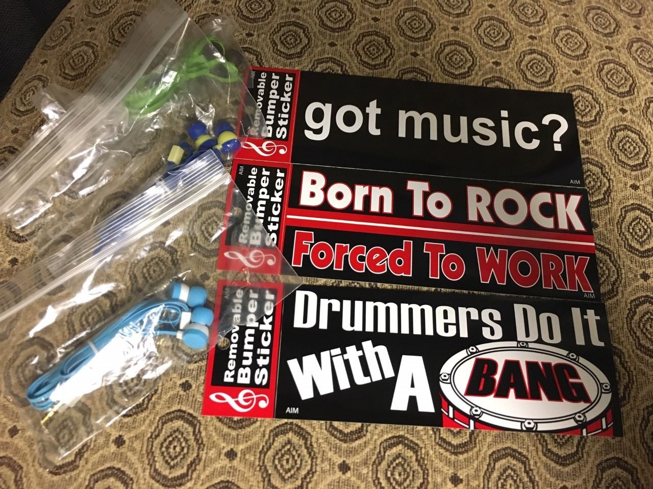 Variety of bumper stickers and other items