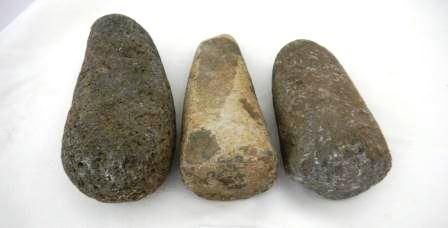 Group of three California Grinding Stones, each measures 3 by 6 inches. Circa 3,000 B.C.. Shipping $40.00. Items are heavy and shipping will be expensive.