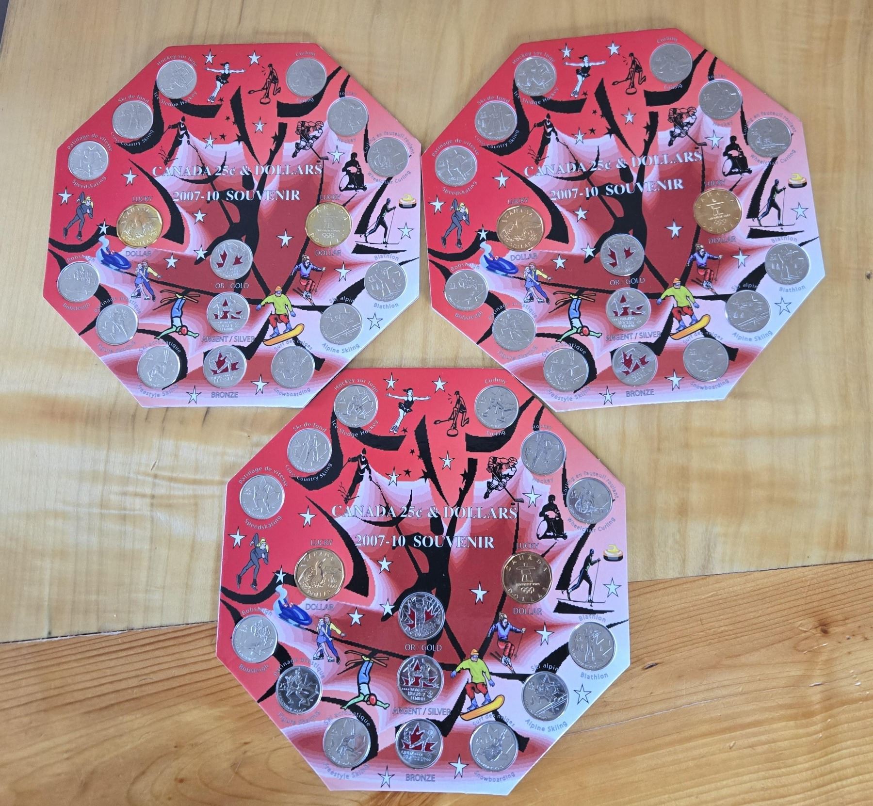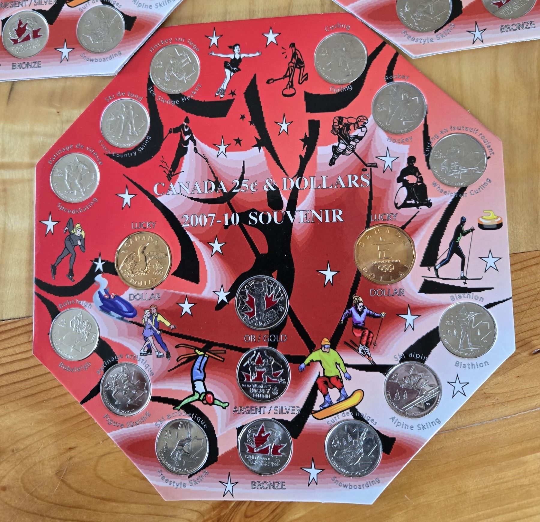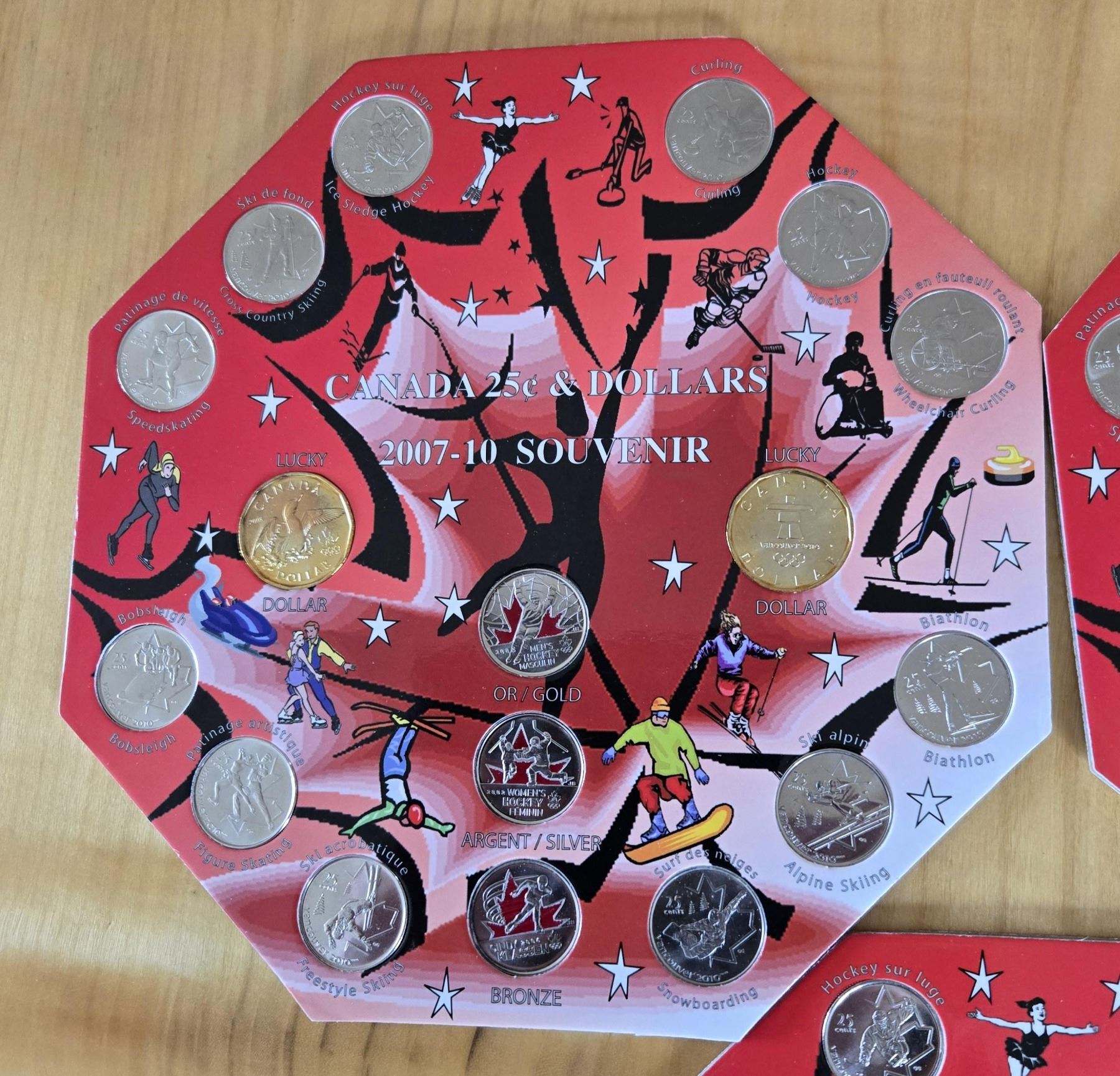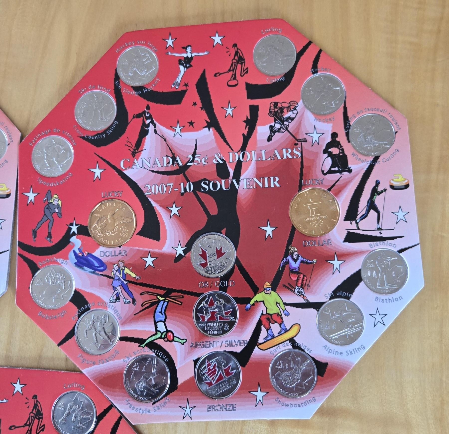 Three Canadian 2007 – 2010 25 Cent and One Dollar Coin Souvenir Cards