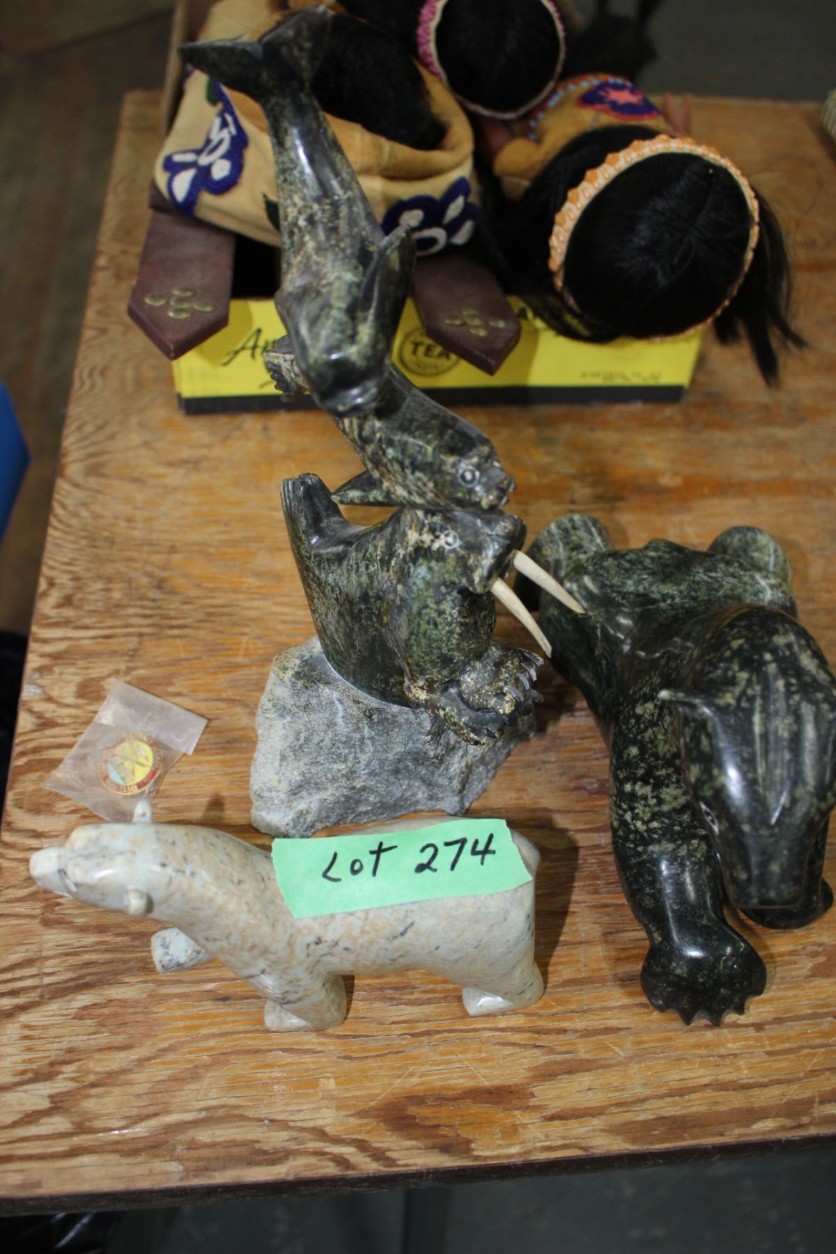 Three Carvings - (2) Bears - Signed & (1) Sea Animals