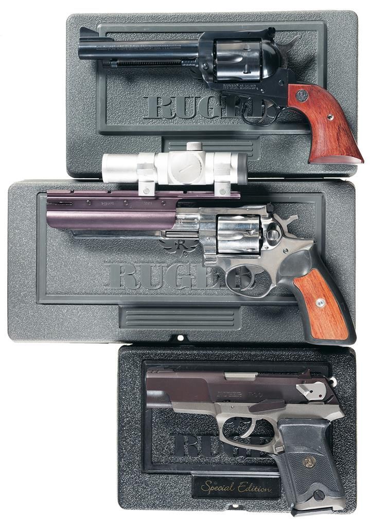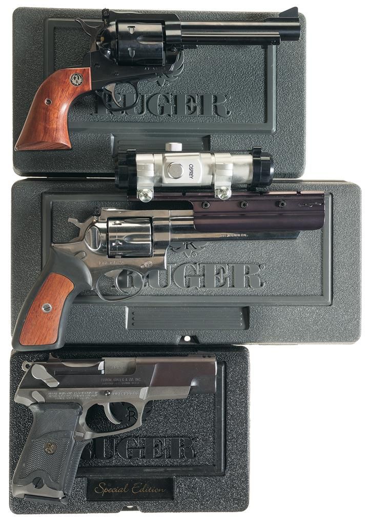 Three Cased Ruger Hand Guns -A) Ruger New Model Blackhawk Single Action Revolver