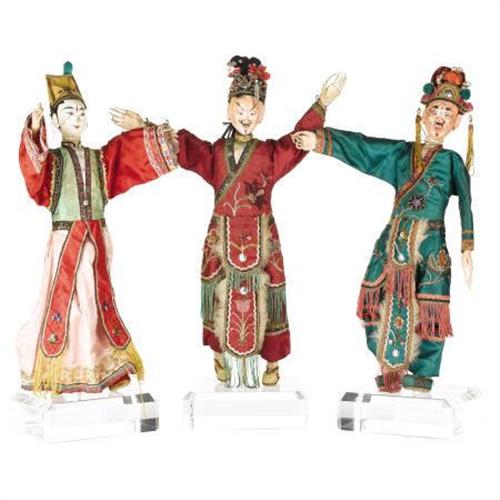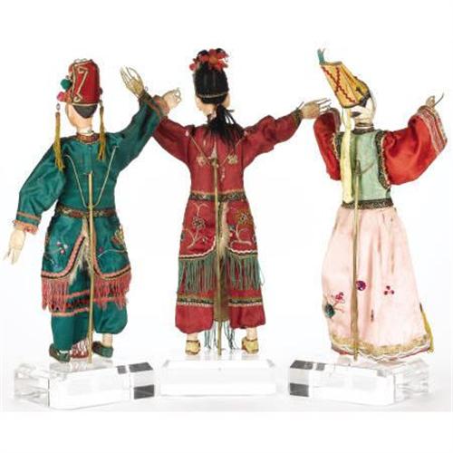 <B>Three Chinese Puppets</B></I><BR>Circa 1900<BR>18 inches high <BR> <BR><BR><b>Shipping:</b> Requires 3rd Party Shipping (<a target="_blank" href="http://www.heritageauctions.com/common/shipping.php">view shipping information</a>)