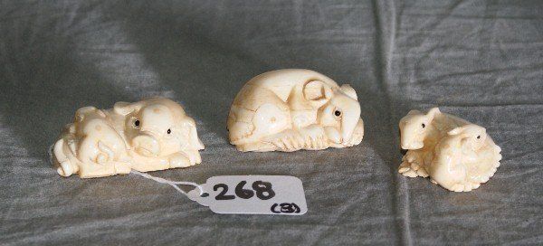 Three Chinese marine ivory netsukes of animals all signed . L:2.25"