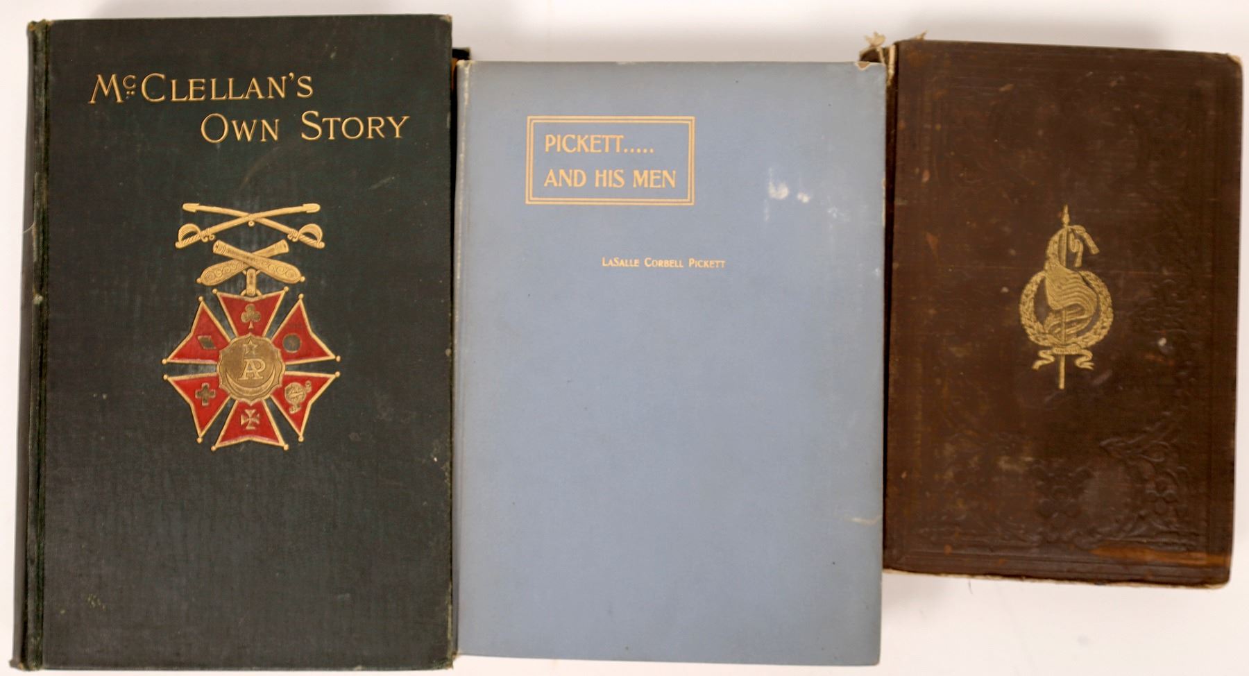 Three biographies about three different Civil War generals. First, we have "Pickett...and His Men," written by his widow Lasalle Corbell Pickett. There are issues, with a few loose pages and some staining on the boards.