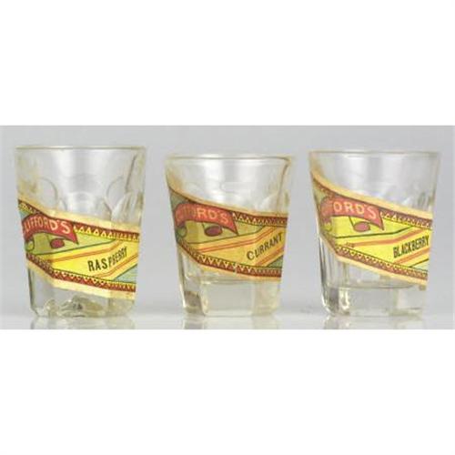 <B>Three Clifford's (Heinz) Sample Jelly Jars With Labels</B></I> Clifford Heinz was one of three children of company founder H. J. Heinz (along with sister Irene and brother Howard). In the 1880s Heinz produced a line of jellies under the Clifford's name brand. Here are three small clear glass sample jars with their seldom seen colorful labels still intact: Blackberry, Raspberry and Currant flavors. The height of these round tapering to hexagonal jars is approximately 2" and the top diameter is 1.5". Excellent condition.<BR><BR><b>Shipping:</b> Miscellaneous Collectibles, Smal (<a target="_blank" href="http://www.heritageauctions.com/common/shipping.php">view shipping information</a>)