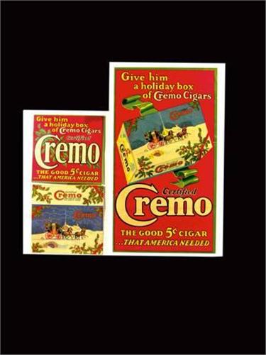 Three Cremo Cigar Advertising Pieces. Two Cardboard Sleeves and One Paper Sign. Excellent Conditon.