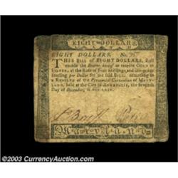 <TABLE cellSpacing=0 cellPadding=0 width="100%" bgColor=#000000 border=0><TBODY> <TR><TD width="100%"><TABLE cellSpacing=1 cellPadding=3 width="100%" border=0><TBODY><TR><TD width="100%" bgColor=#79735c><FONT face=arial color=#ffffff size=3><B>Description</B> </FONT></TD></TR><TR><TD width="100%" bgColor=#ffffff><FONT face=arial size=2><B>Three December 7, 1775 Maryland Notes.</B></I> A $2 2/3 grading <B>Choice Very Fine,</B></I> which is a very high grade for this issue, and a $6 and $8 example, both of which grade just under <B>Very Fine</B></I>. (300-up ) (3 notes) </FONT></TD></TR></TBODY></TABLE></TD></TR></TBODY></TABLE><BR><TABLE cellSpacing=0 cellPadding=0 width="100%" bgColor=#000000 border=0><TBODY><TR> 3 notes Important notice: Heritage usually auctions material at the rate of 200-250 lots per hour. On some occasions eBay Live bid software or the Internet may not be able to keep up with the pace of the auction. We recommend placing a realistic absentee bid now as insurance to avoid disappointment. Occasionally the auctioneer may eliminate or reject an eBay Live bid, and the auctioneer may also reopen a lot after the close of the eBay live bidding (usually because we missed an audience bid), and may reject your bid even if it shows you as the winning bidder. By bidding via eBay Live, you agree that Heritage may award the lot to another bidder at its sole discretion under the circumstances described above or any other reasonable circumstances. Also please note that all Heritage lots purchased through eBay Live carry a 20% Buyer's Premium. Please make sure you read the Terms and Conditions before you bid.</TR></TBODY></TABLE>