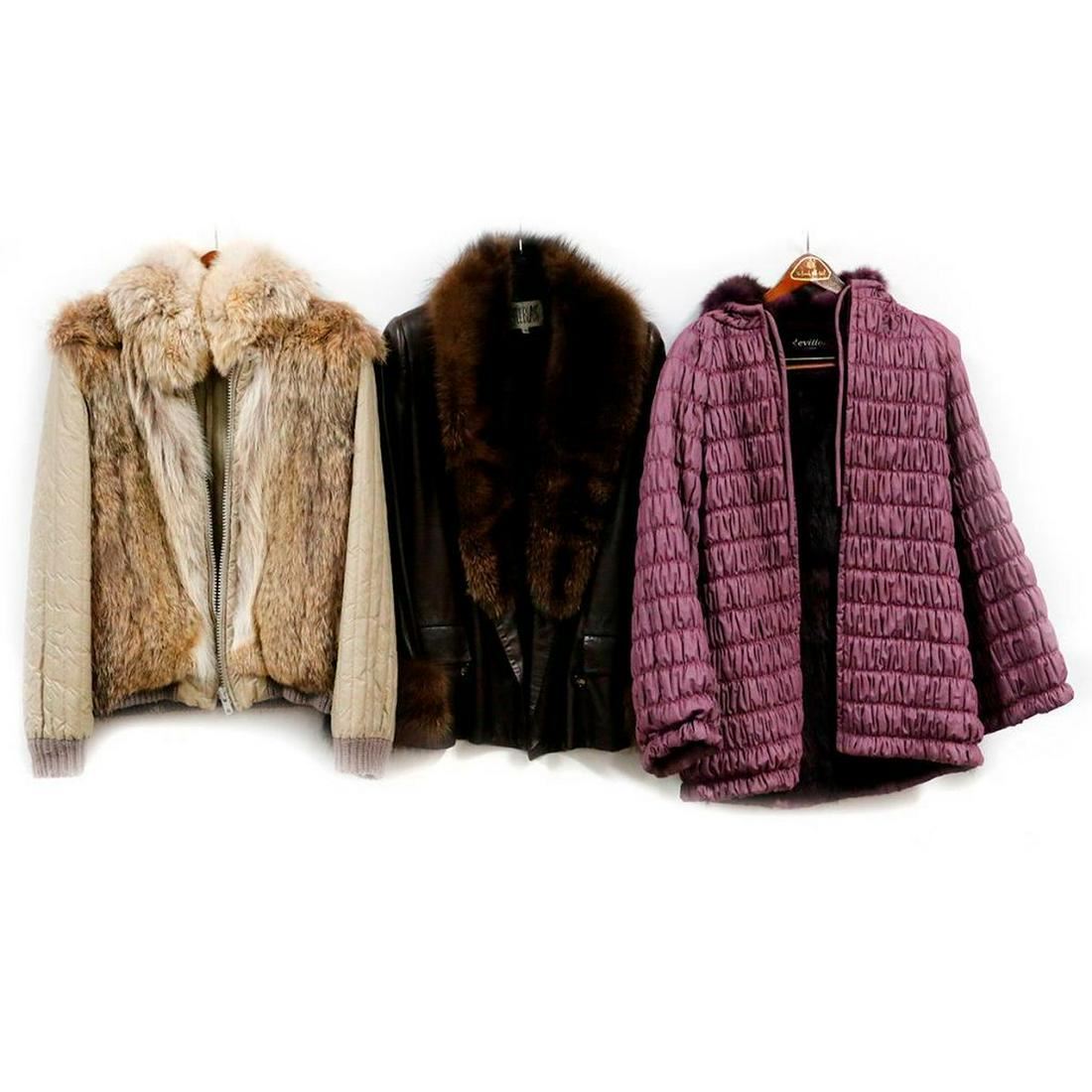 Including: Bill Blass leather & fur, size 12 Revillon Boutique NY, Saks Fifth Avenue purple quilted & fur, no size Revillon Boutique tan quilted & fur winter jacket, no size Items are sold as is. Please inquire about condition if not otherwise stated.
