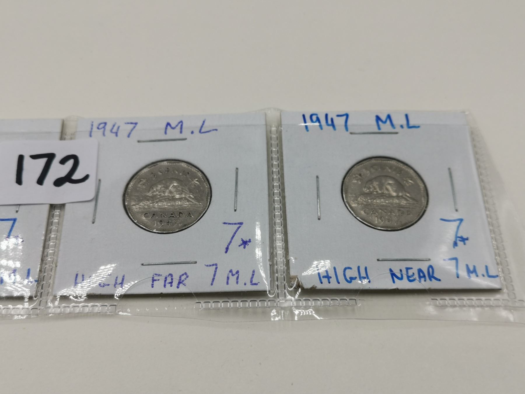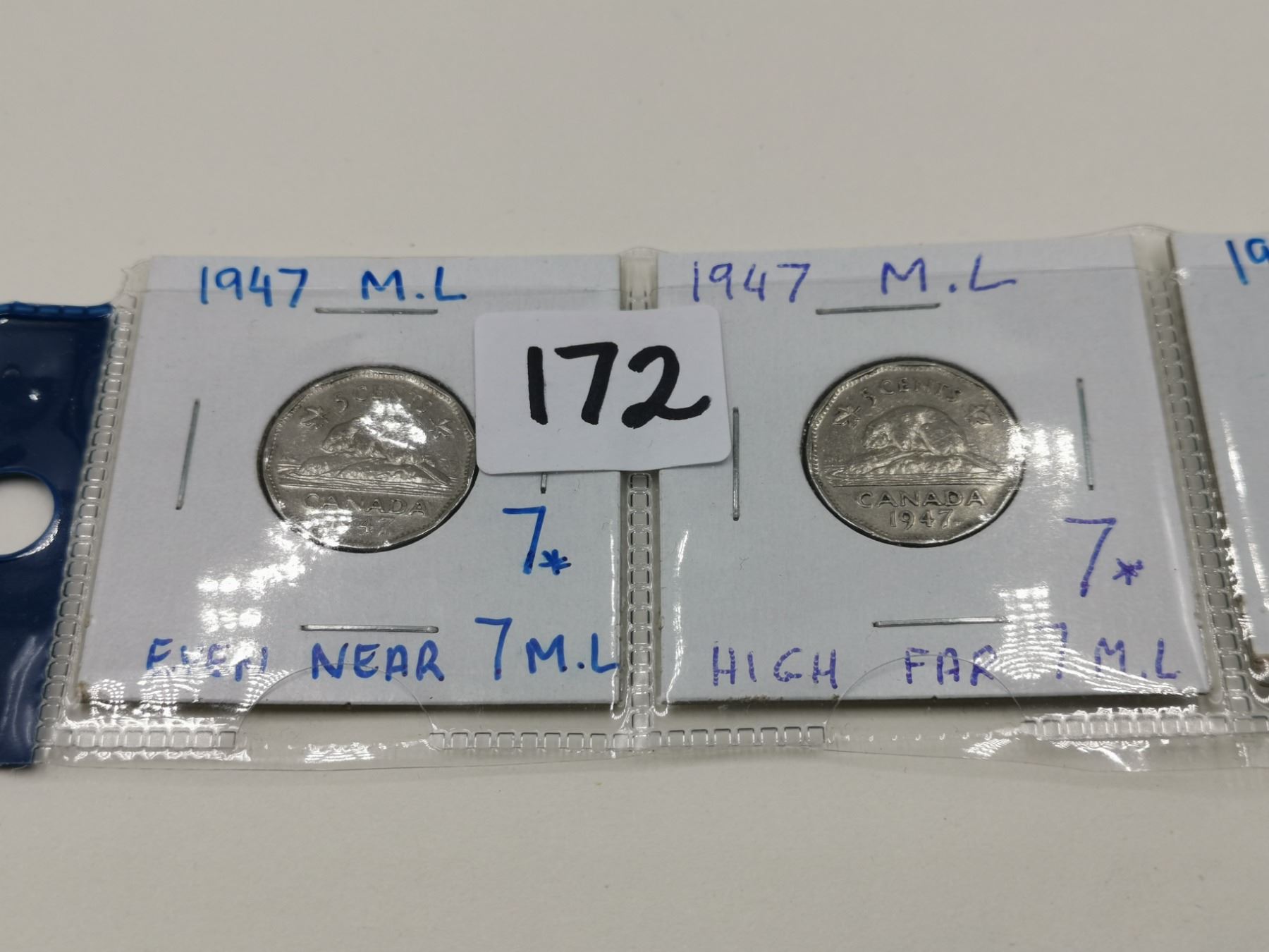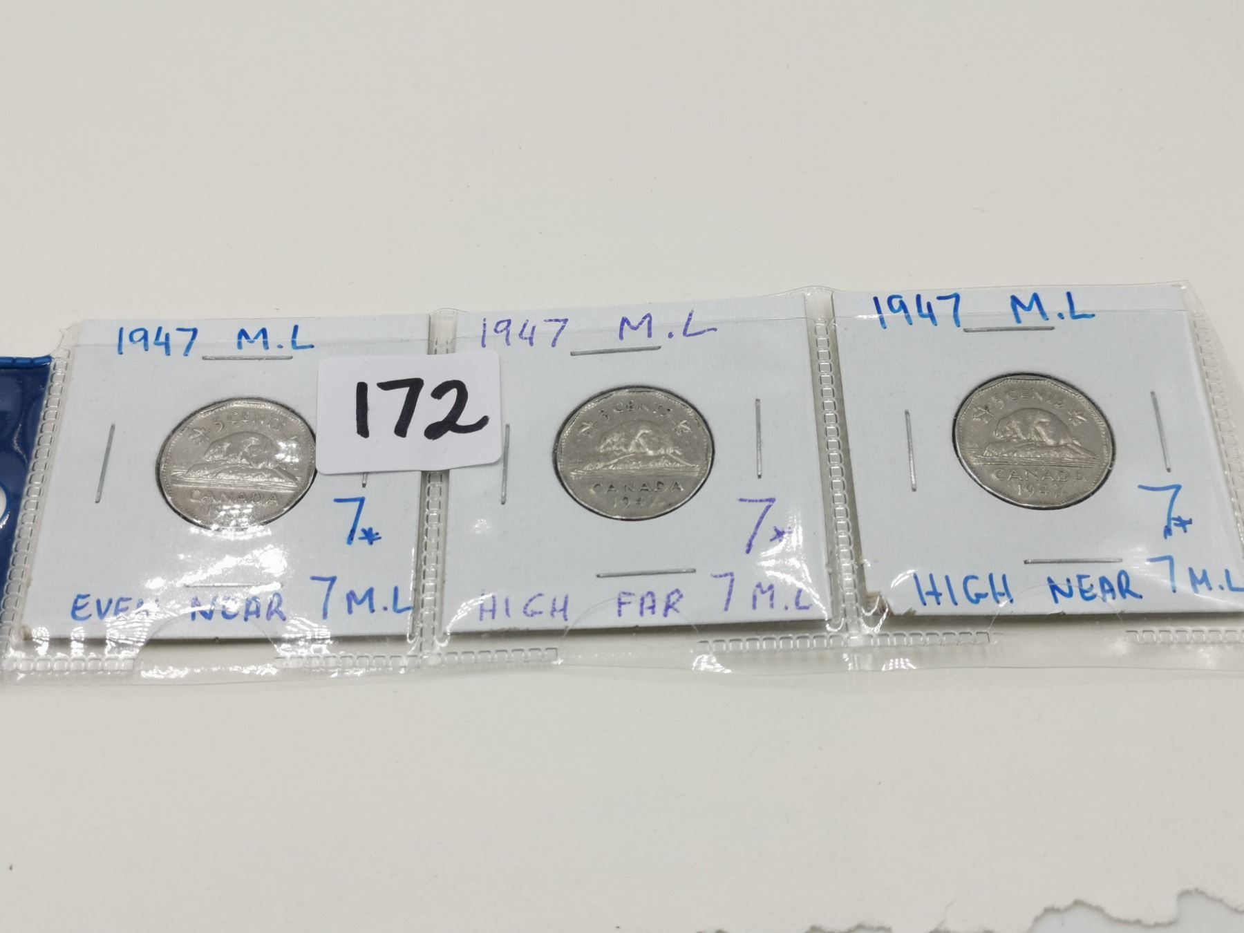 Three Different 1947 Maple Leaves 5 Cent Coins