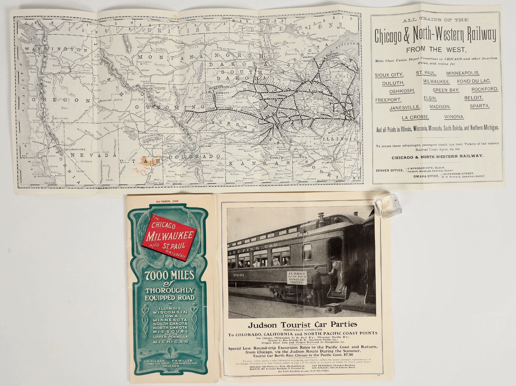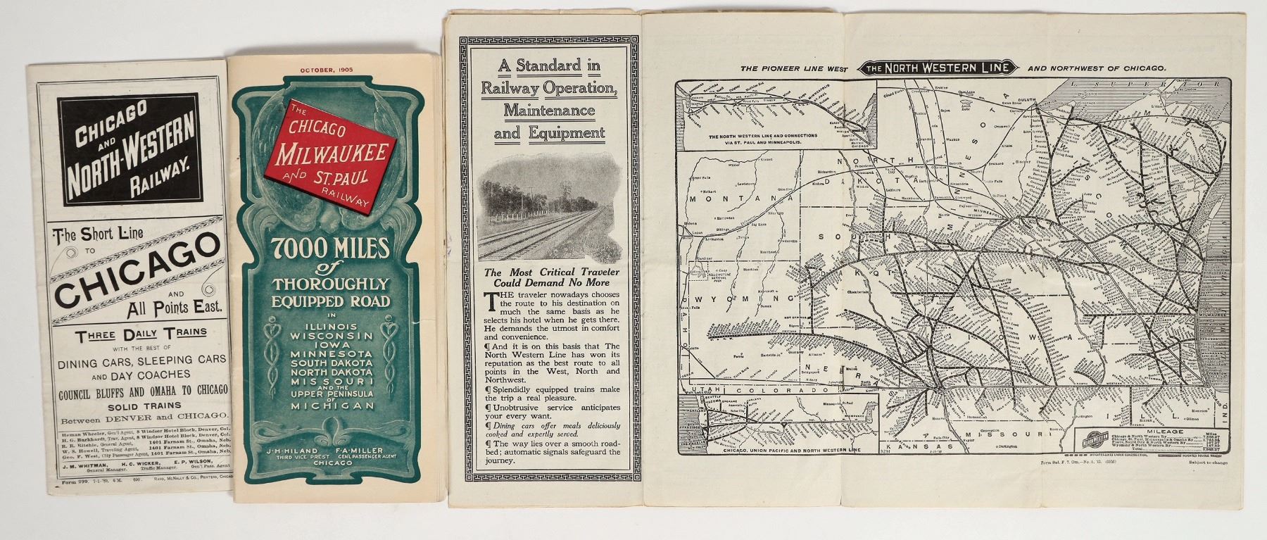 Lot of 3 different. 1) Chicago & North-Western Railway, 1889. 6 panel with large map. 2) Chicago Milwaukee & St Paul Railway. Oct. 1905. 38pp. 3) Chicago & North Western, 1912.