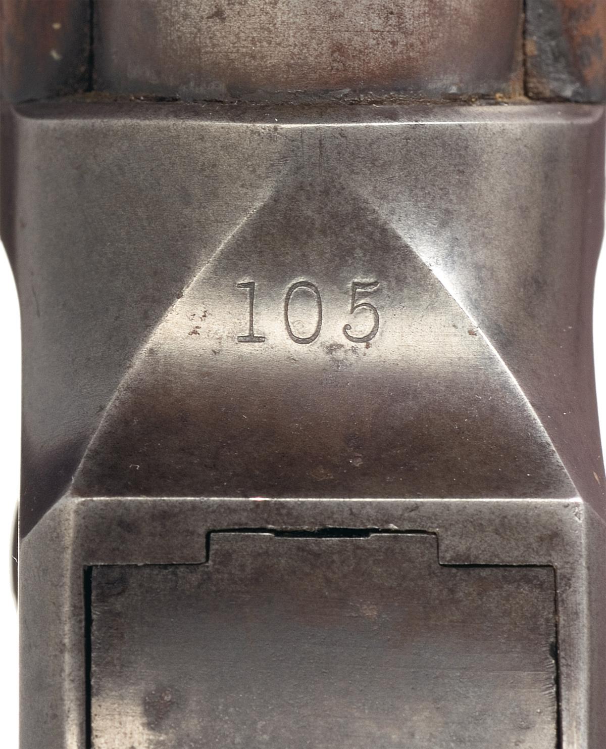 Condition: Very good plus with the metal surfaces exhibiting a dark mottled patina and some minor corrosion. The shotgun retains light traces of bright and vivid case color on the receiver and lever, mostly in the protected areas. The re-varnished stock is fine with minimal handling marks and a few minor dents. There are a few light nicks in the overall sharp checkering. The markings are clear. Mechanically very good.