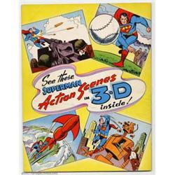 Three-Dimensional Adventures of Superman (DC, 1953). This magazine-sized issue retells the origin of Superman with new art in eye-popping 3-D. An all-Superman issue which comes with the original glasses still attached! Nice mid-grade condition, flat with no tears or creases and nice cover gloss. Great 3-D effect! FN+ Light tan pages. Overstreet 2001 FN 6.0 value = $332.  Important notice: We expect to be auctioning lots at the rate of 200-250 per hour. Sometimes eBay Premier live bid software cannot keep up with that pace, so we strongly recommend that you place a realistic proxy bid now as insurance to avoid disappointment. Also please note that all Heritage/CAA lots purchased through eBay Premier carry a 20% Buyer's Premium.