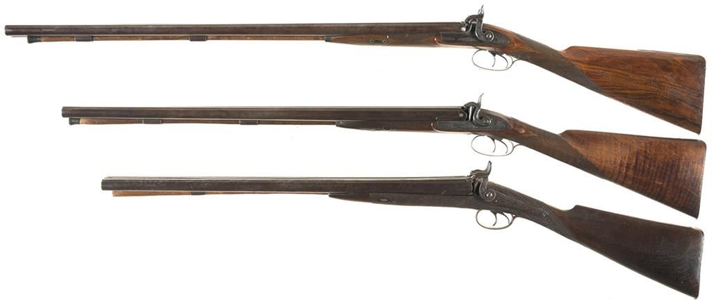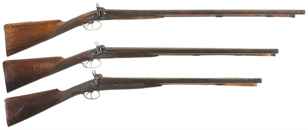 Three Double Barrel Percussion Shotguns -A) W. Richards Shotgun