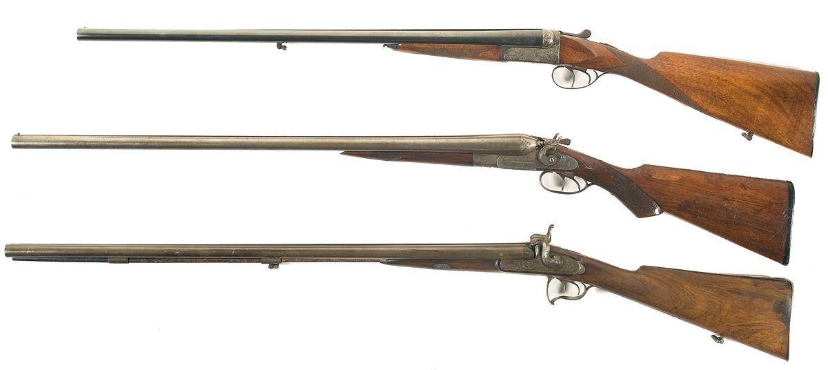 C) No visible markings with floral engraved lock plate and hammers. Complete with wooden ramrod. Full chokes, pull is 13 3/8".
