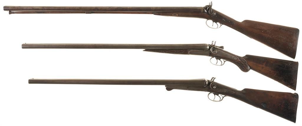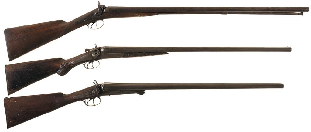 Three Double Barrel Shotguns -A) Field Ibbotson & Co. Percussion Shotgun