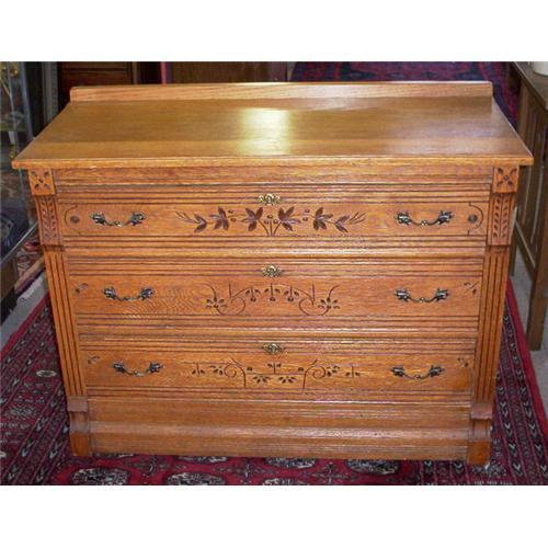 <table width="100%" border="0" cellspacing="0" cellpadding="4"><tr><td><em> </em></td></tr><tr> <td width="100%"> This oak three drawer dresser, which may date to the early 1900s, features an intricately carved, stylized botanical design, complemented by elegant hardware. The piece is in excellent condition, and would make a perfect addition to any bedroom, or any other room in the house, especially for the oak collector! Shipping costs will be calculated at the time of purchase (as costs will vary depending on the location of the buyer) at the best possible rate. </td></tr><tr> <td> </td></tr><tr> <td>Reference #: RAF4133</td></tr><tr><td>Condition:excellent</td></tr><tr><td>Year:early 1900s</td></tr><tr><td>Height:31.5</td></tr><tr><td>Depth:19</td></tr><tr><td>Width:41</td></tr><tr><td>Title:Three Drawer Oak Dresser with Carved Designs</td></tr><tr><td>Materials:oak</td></tr><tr><td>Location:Marion, SC</td></tr></table>