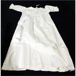 Three Edwardian lace and linen christening gowns and a tablecloth…