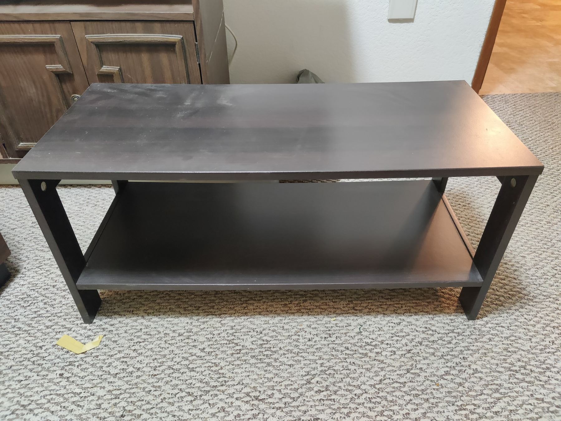 One small rectangular end table. Measurements: 32" across, 14" deep and 15" high