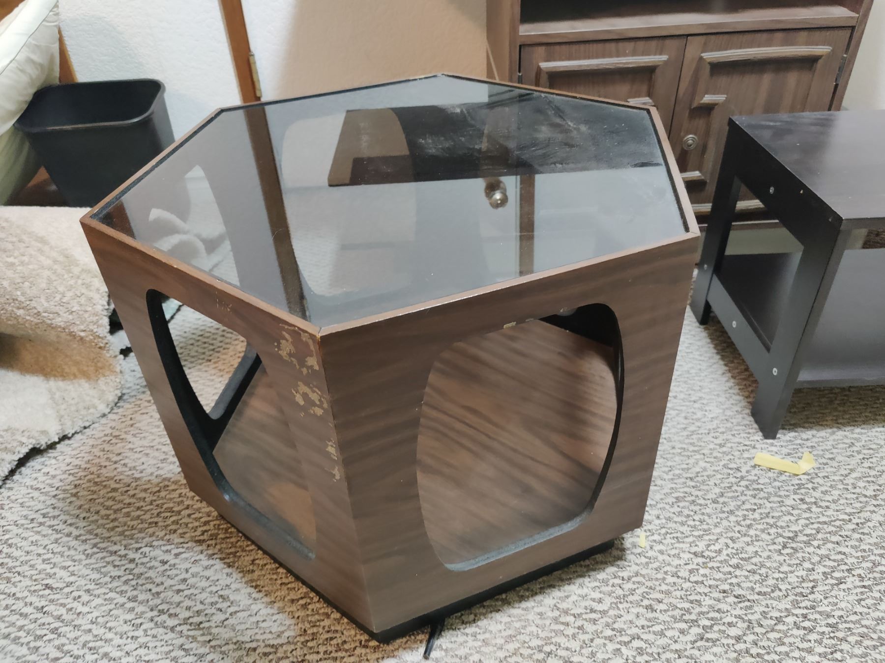 One Hexagonal table. Measurements: 23" by 23" across 18" deep