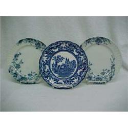 Three English plates including a pair of "Jersey" transferware plates marked A Bros. (G. L. Ashworth & Bros. Ltd., Broad St. Hanley, Staffordshire Potteries 1862 - 1890); and a blue transferware plate marked Colonial Pottery, Stoke England (F. Winkle & Co. Ltd. 1890 - 1925) Low Est. :