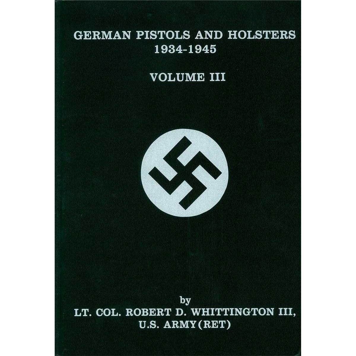 With holster that has been cut for easier access to gun, book titled "German Pistols and Holsters 1934-1945 Volume III" and two magazines total.